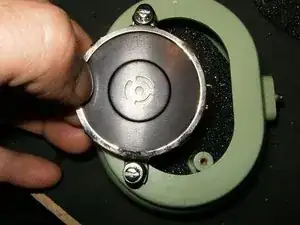 Когда два винта будут ослаблены, поднимите динамик из купола.