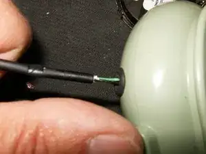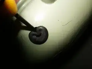 Удалите резиновую прокладку из отверстия для кабеля динамика, используя ювелирную отвертку. Осторожно используйте отвертку, чтобы вытолкнуть ободок из отверстия.