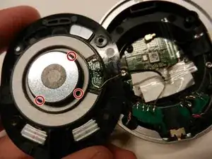Удалите четыре винта 5 мм из звукового элемента с помощью отвертки Y1 Triwing.