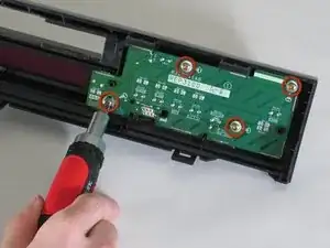 Используйте это руководство, чтобы снять правую функциональную плату с передней панели DVD-плеера.