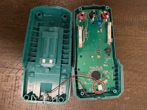Поверните ручку, пока маленькая зеленая метка не окажется на положении "ВЫКЛ.". Затем отключите два измерительных провода, просто потянув их от корпуса. Уберите их в сторону для дальнейшего использования.