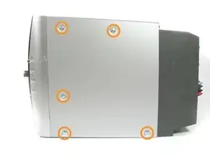 Снимите пять винтов Филлипс #2 длиной 9 мм с боковой панели, ближайшей к кнопке питания.