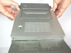 Снимите верхнюю панель. Для освобождения защелки, прикреплённой к верхней части, потребуется слегка отогнуть пластиковую защёлку наружу.