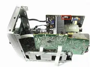 Смотря со стороны, ближайшей к кнопке питания, возьмите белый ленточный разъем пальцами и потяните его на себя, от платы на задней панели.