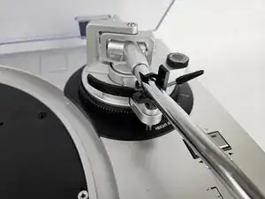 Убедитесь, что зажим тонарма установлен на место.