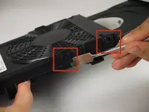 Подденьте нейлоновую или металлическую лопатку под защёлку на боковой стороне ближе к передней части устройства. Поднимите защёлку, чтобы она освободилась от корпуса.