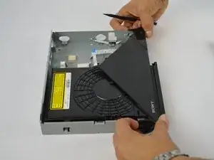 Открутите два винта, крепящих привод дисковода к корпусу, с помощью отвёртки с крестообразным шлицем №1.