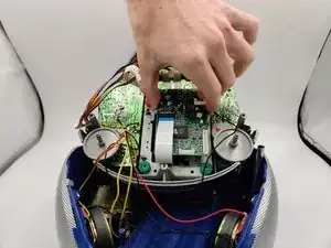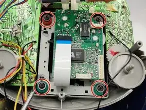 Удалите четыре шурупа Phillips #0 на красных и зеленых шайбах.