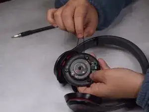 Снимите амбушюры с наушников. Предпочтительный метод для этого — использовать отвертку и поддеть амбушюры.