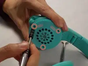 Используйте отвертку Phillips #2, чтобы открутить три винта диаметром 5 мм, которые крепят крышку динамика.