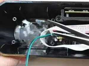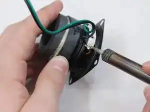 Удалите зеленое (левое) и красное (правое) проводное соединение со спикерной лампы с помощью паяльной станции.