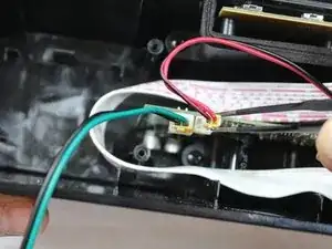 Перерезать кабельные стяжки, обернутые вокруг красных и зеленых проводов, с помощью ножниц или плоскогубцев.