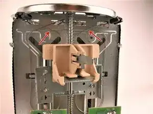 Нажмите на рычаг тостера, чтобы получить доступ к пружине захвата, расположенной за большой металлической пластиной.