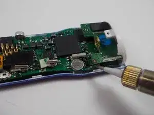 После расплавления припоя удалите пружинные контакты батареи с материнской платы.