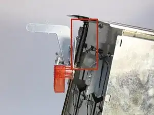 Переверните тостер обратно и снимите оболочку, удостоверившись, что рычаг тостера (теперь без черного пластикового япбия) проходит через отверстие для рычага в оболочке.