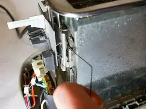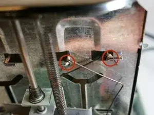 Нажмите на рукоятку тостера, чтобы получить доступ к пружине захвата, расположенной за большой металлической пластиной.