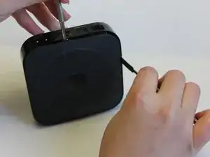 У Apple TV нет видимых винтов или очевидных мест для доступа. Поэтому сначала необходимо использовать металлическую лопатку или две и вставить их между резиновым основанием и верхним корпусом.