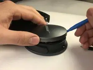 Переверните наушники и аккуратно подденьте вокруг внешней крышки наушника.
