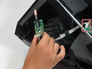 Отключите ленточный кабель привода CD от верхней части устройства.