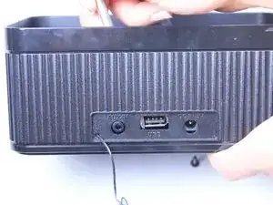 Снимите верхнюю часть часов, захватив заднюю часть док-станции для iPhone и потянув строго вверх.