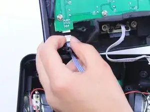 Снимите белый разъём шлейфа, который соединяет центральную плату с платой, прикреплённой к верхней части часов, захватив его с обеих сторон и потянув прямо от платы.