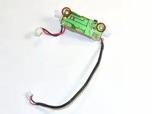 Открутите два винта Philips #00 длиной 5 мм от зеленой платы электроники наушников/питания, чтобы отсоединить ее от белой опоры.