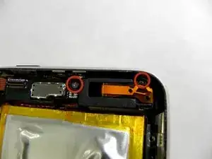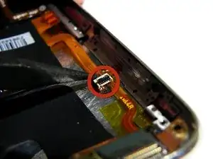 Следите за тем, чтобы не повредить кабель разъема сенсорного экрана, который все еще соединен в верхнем левом углу iPod.
