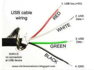 Обрежьте силовой шнур и снимите изоляцию с проводов, должны появиться два провода: черный и красный, как показано на рисунке.