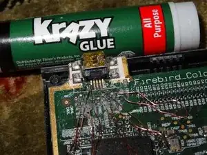 Избегайте суперклея, который легко течет. Он может забить новый порт или создать беспорядок, как показано на фотографиях.