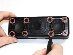 Удалите восемь винтов Phillips #0 длиной 10 мм с крепления динамика.