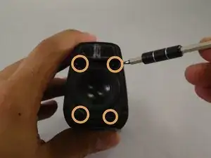 Поверните колонку на бок, где находится разъем для зарядки. Удалите 4 винта размером 5,57 мм, обращенные к вам.