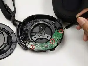 Поднимите динамик с гарнитуры, чтобы получить доступ к печатной плате.