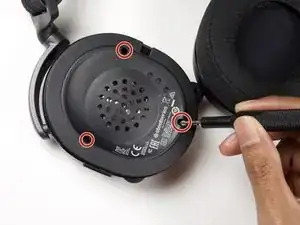 Удалите три винта 5 мм с помощью отвертки с крестовым шлицем #0 на наушниках с микрофоном.