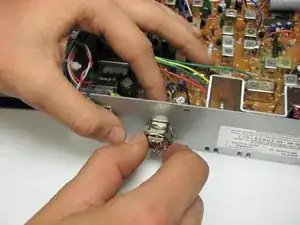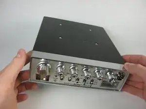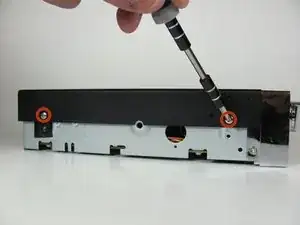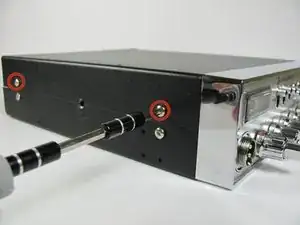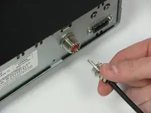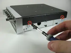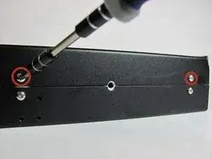 Отвинтите четыре винта с крестообразной шлицей 6,0 мм против часовой стрелки по левому и правому краю устройства, которые крепят оставшуюся крышку, используя отвёртку Phillips №1.