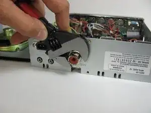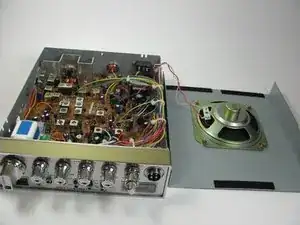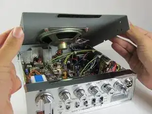 Осторожно: следите за проводами, подключёнными к динамику. Эти короткие провода не позволят вам сильно отодвинуть крышку.