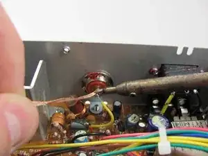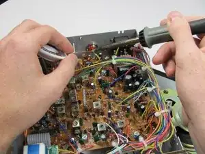 Отпаивайте жёлтый провод, который подключён к разъёму антенны, при помощи паяльника и оплётки для удаления припоя.