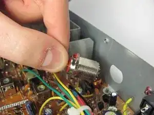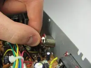 Снимите фиксирующую гайку и шайбу с разъёма антенны.