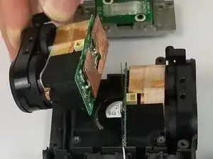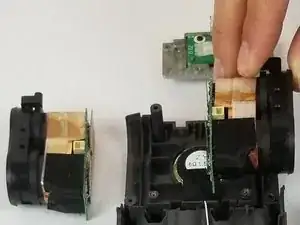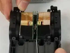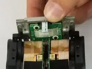 С помощью пластикового инструмента для вскрытия отогните защёлку и осторожно отсоедините ленточный коннектор от устройства.