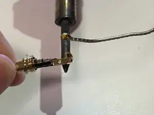 Нанесите припой на каждую клемму разъёма для наушников.