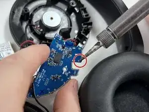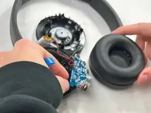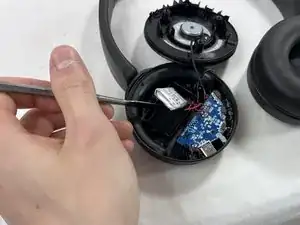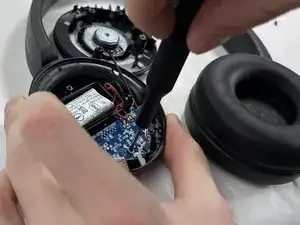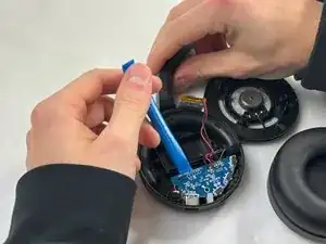 Используйте инструмент для вскрытия, чтобы приподнять материнскую плату из корпуса наушников.