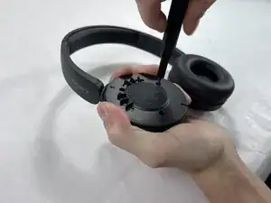 Перемещайте инструмент по разным участкам основания наушников, поддёргивая его, пока крышка не снимется.