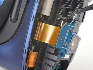 Используйте плоский конец лопатки, чтобы отвести вверх небольшой фиксирующий язычок, удерживающий ZIF-разъём кабеля лицевой панели.