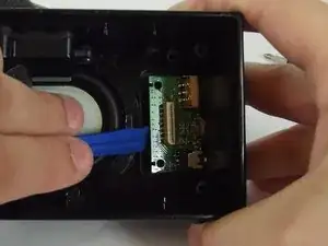 Используйте пластиковый инструмент для открытия и пинцет в разных точках, чтобы снять кожух аудиовхода.