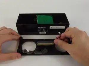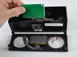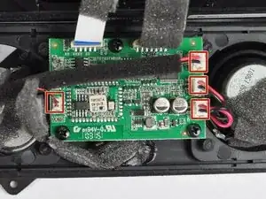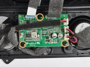 Крестовой отвёрткой Phillips #1 отвинтите два чёрных винта 10 мм внутри корпуса на стороне с USB- и AUX-входами.