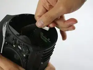 Будьте осторожны, чтобы не повредить маленький белый ленточный кабель, который соединяет крышку аккумулятора с остальной частью устройства.