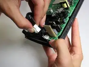 С помощью пластикового инструмента для вскрытия iFixit подденьте разъём динамика вверх и оторвите его от гнезда.