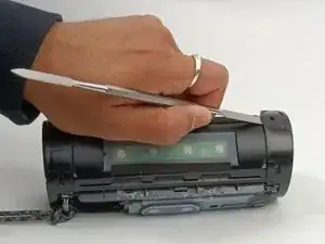 Используйте лопаткy, чтобы отжать пластиковые защёлки, фиксирующие внешний корпус.