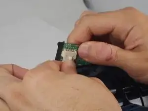 Снимите последнее кабельное соединение, сжав язычок и потянув его прямо из разъёма.
