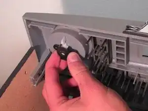 Снимите винты и черную деталь, которые удерживают регулятор громкости на месте.