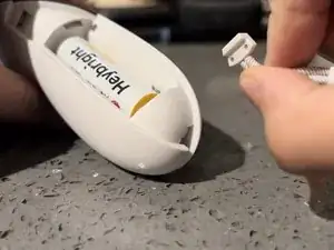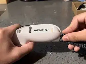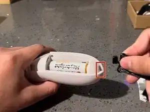 С новым ремешком для запястья, надавите черный зажим вниз в теперь пустой небольшой отсек, чтобы подключить новый ремешок к контроллеру.